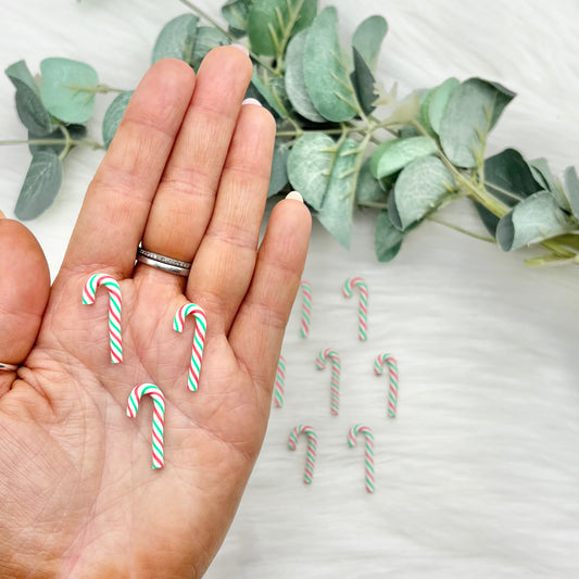 Mini Candy Canes - Red, White & Green - 10 Pack of Cabochons