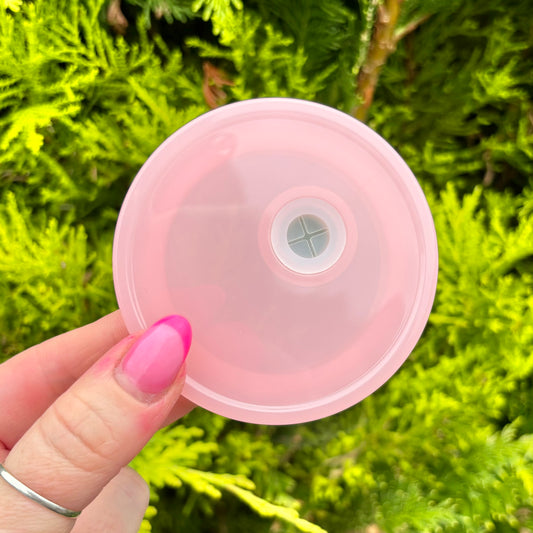 15oz Double Walled Glass Snowglobe with Baby Pink Acrylic Lid