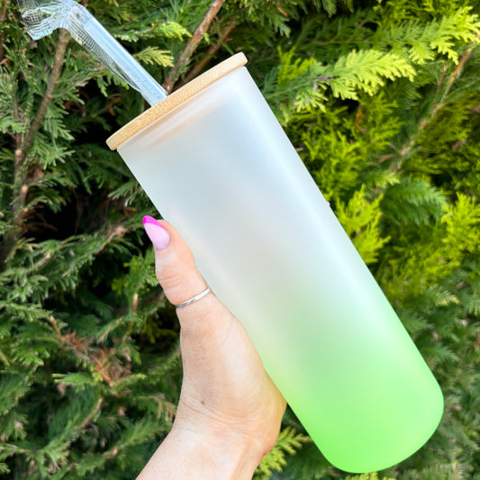 Ombre Gradient 25oz Sublimation Glass Can With Bamboo Lid