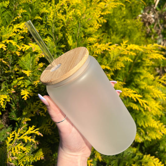 Frosted 16oz Sublimation Glass Can With Bamboo Lid