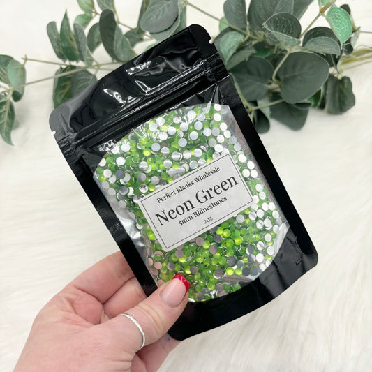 Neon Green Silver Bottom Rhinestones - 5mm