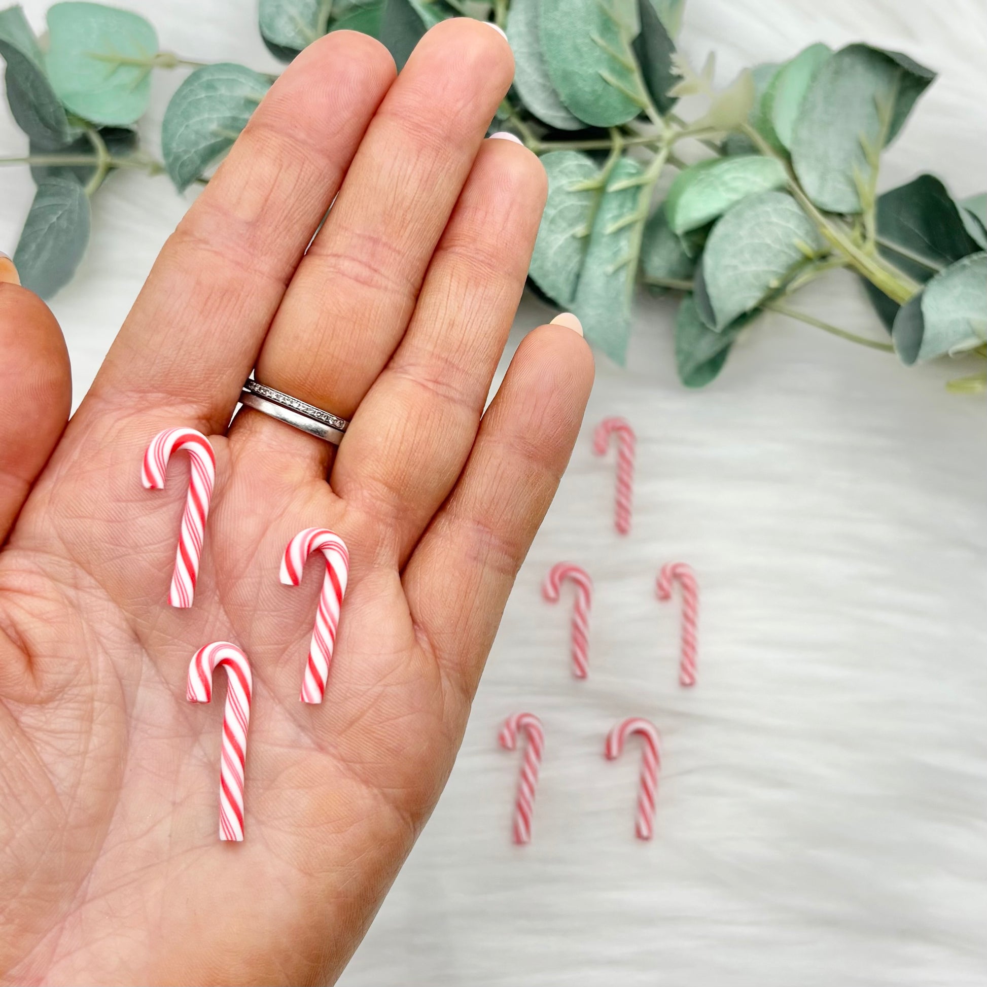 Mini Candy Canes - Red & White - 10 Pack of Cabochons