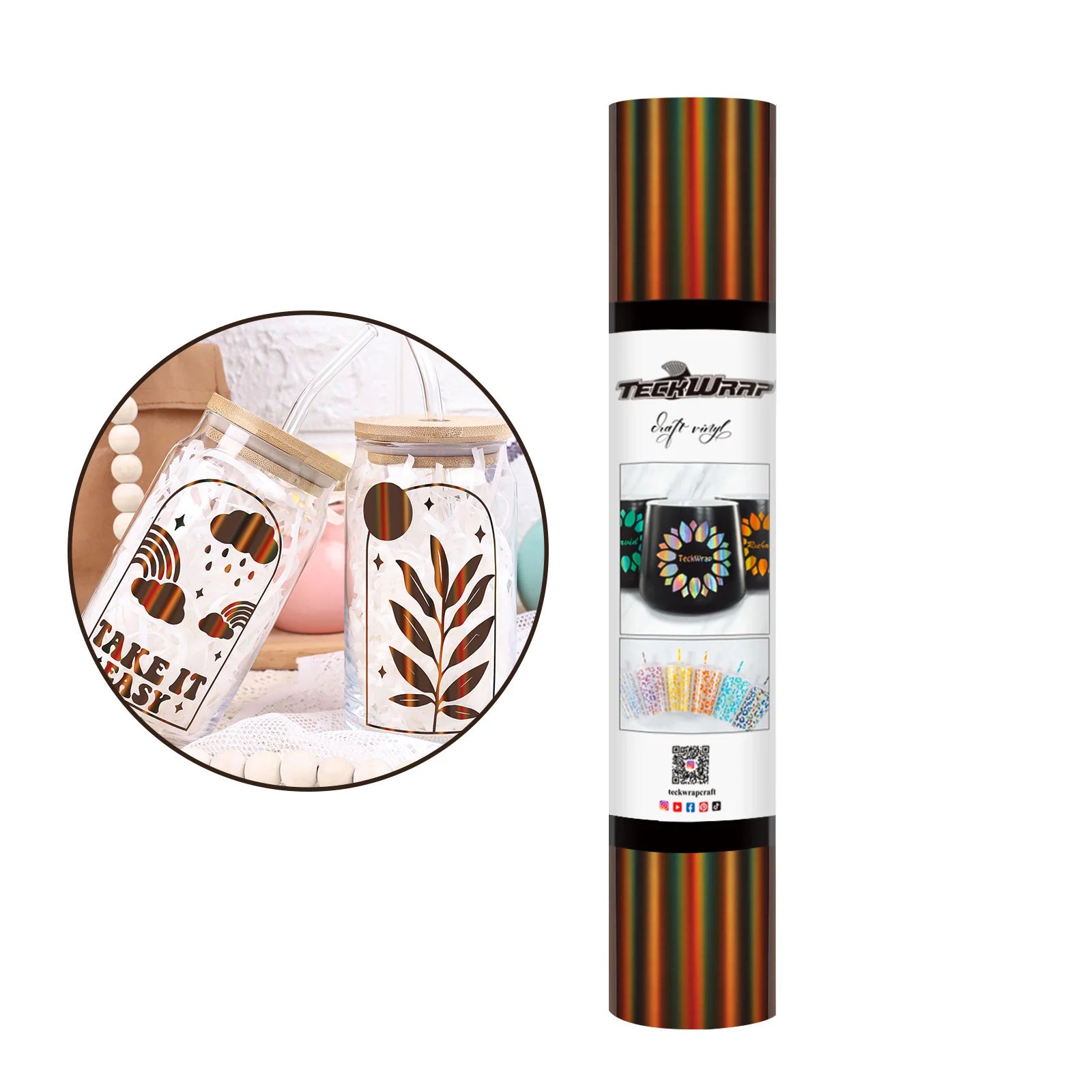With our new holographic, high-gloss rainbow adhesive vinyl, you will finally be able to create that masterpiece that has been eluding you for so long. The best part? We have managed to pack it into a lightweight roll.