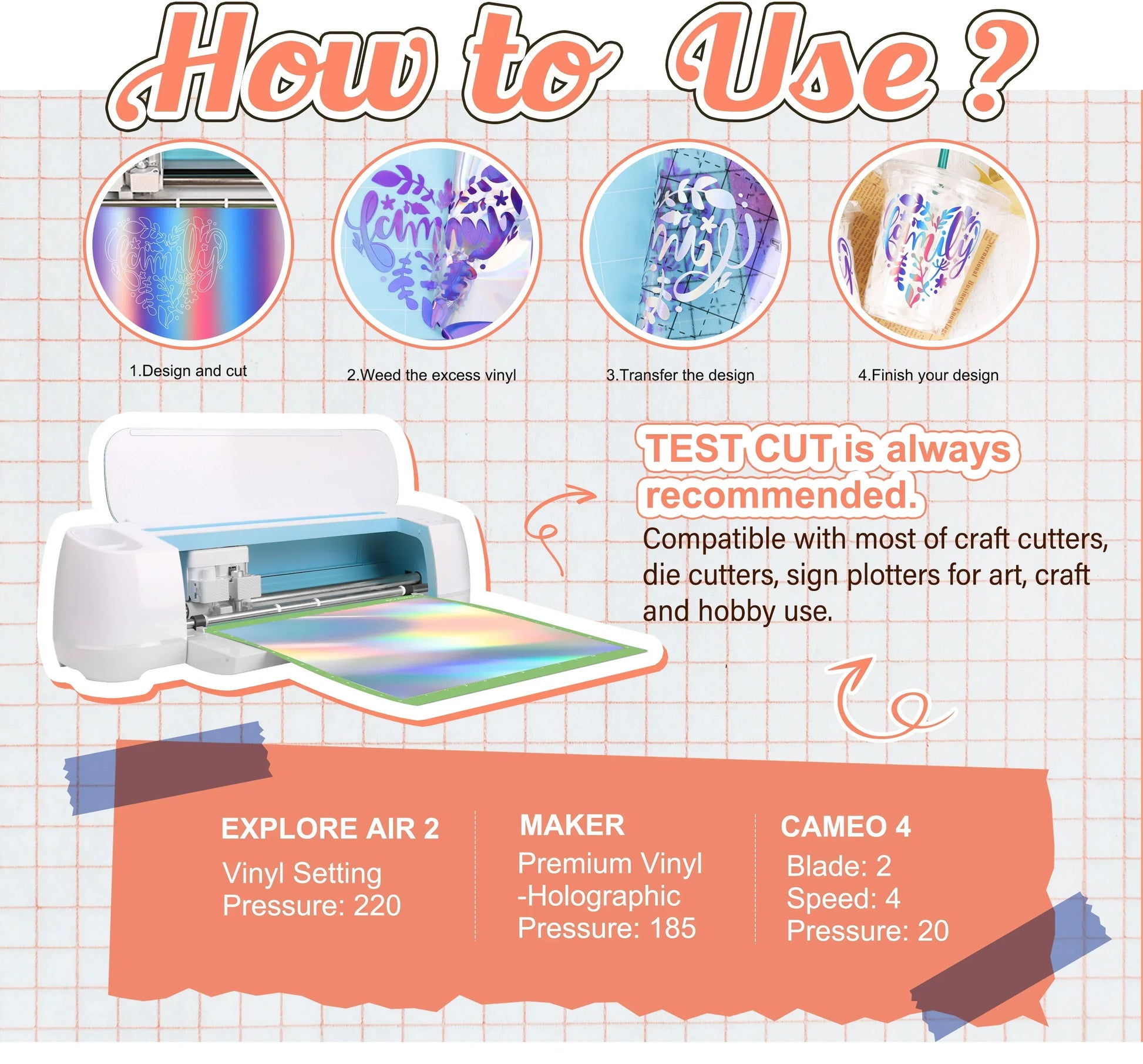 - Compatible with most Craft Cutters, Die Cutters, Sign Plotters for art, craft and hobby use.