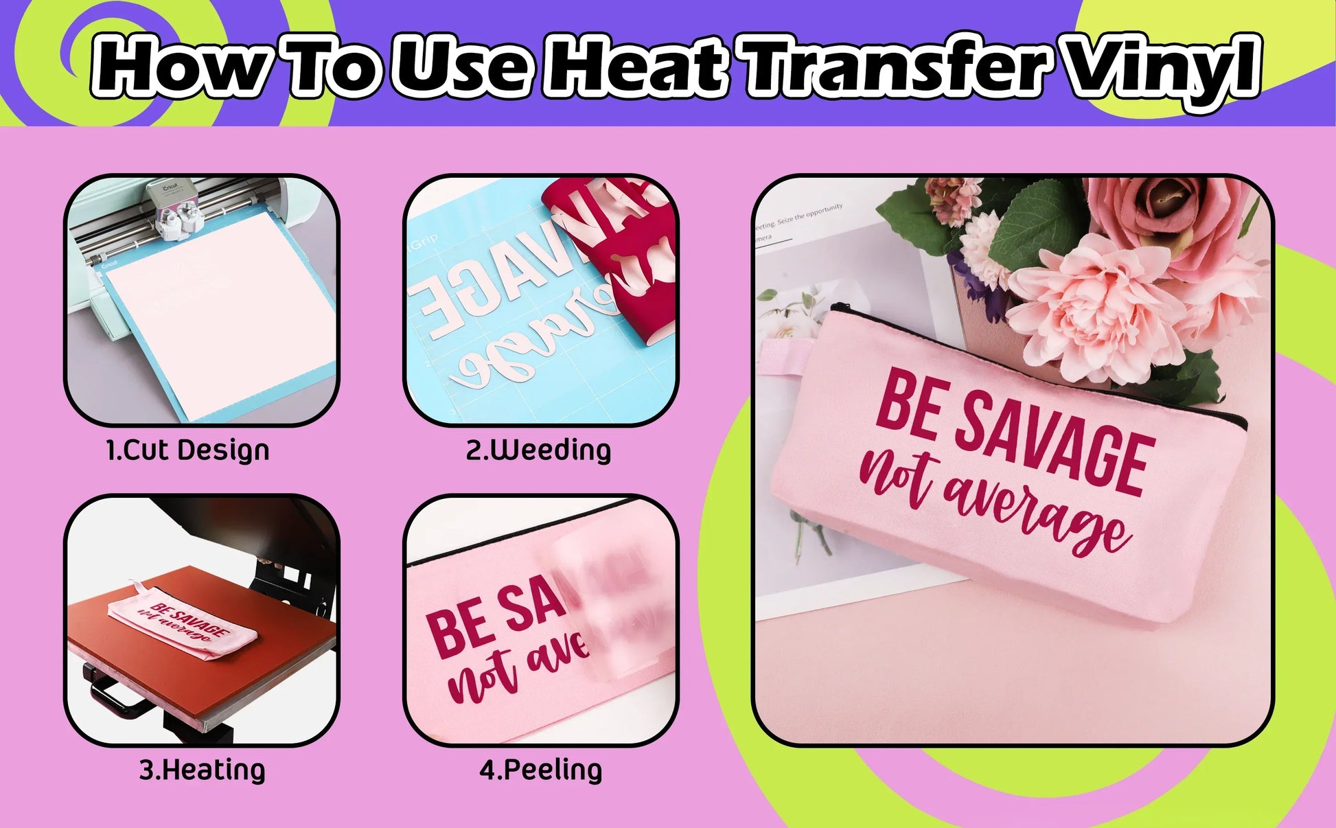 Featuring 46 AMAZING colors, get creative with the best heat transfer vinyl rolls for bags, aprons, pillowcases, fashion accessories, and so much more!